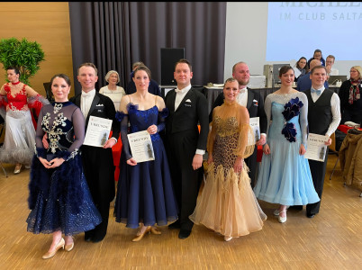 Im Turnier der Hauptgruppe B Standard setzten sie sich souverän gegen vier weitere Paare durch und holten den 1. Platz.